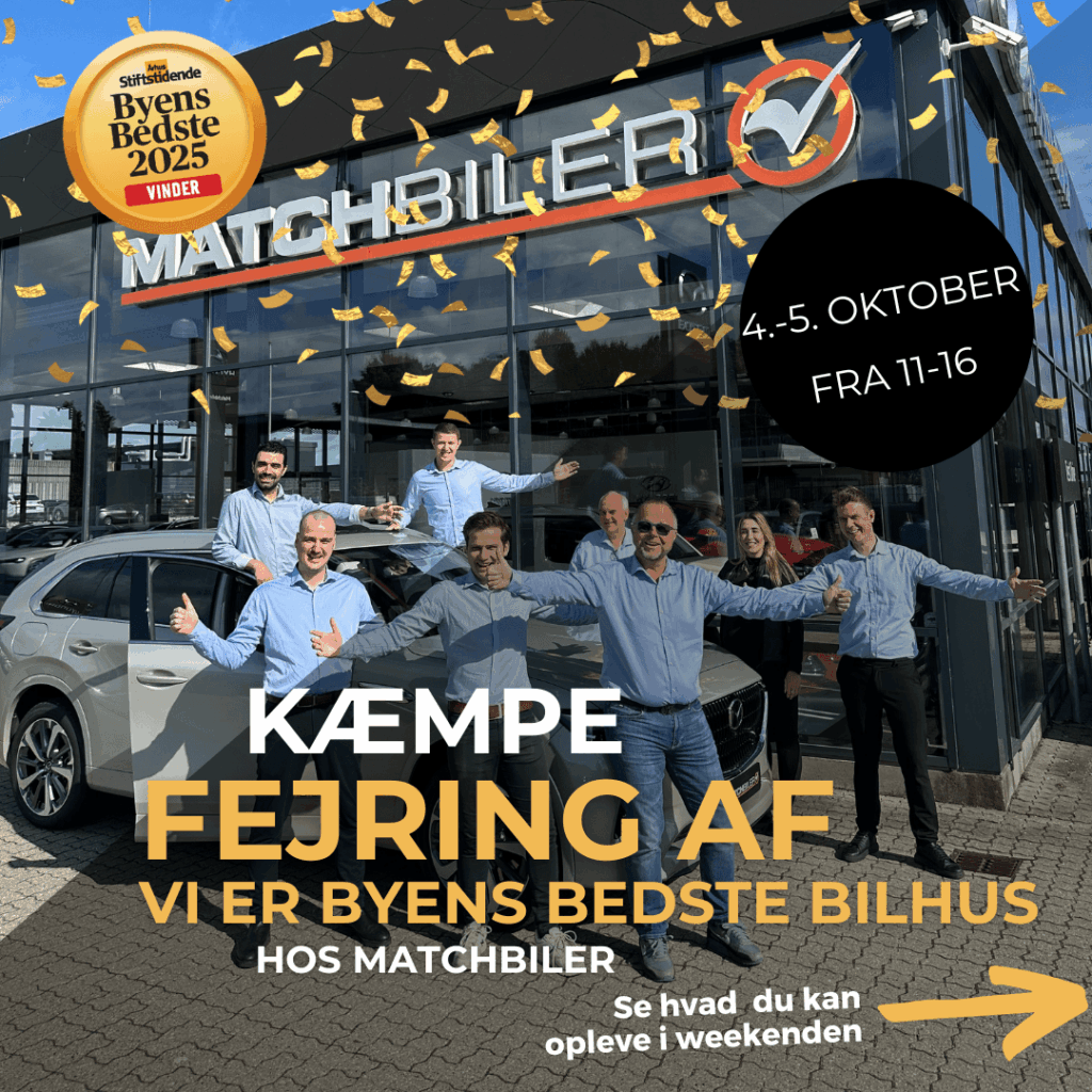 Så er det tid til endnu en festlig weekend hos Matchbiler – og du er inviteret! Lørdag d. 4. og søndag d. 5. oktober holder vi åbent hus fra kl. 11-16 på Fabrikvej 16 i Viby J. Denne gang fejrer vi, at vi netop er kåret til Byens Bedste Bilhus 2025 – og at vi […]